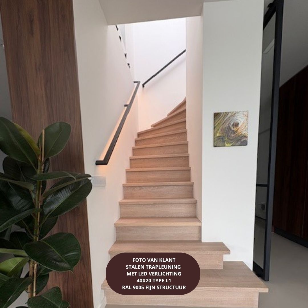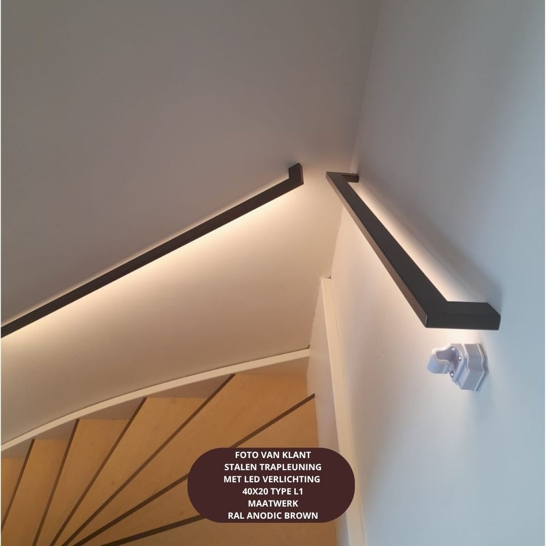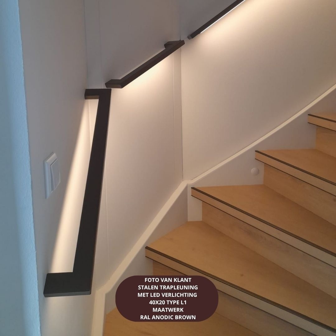 - Stalen trapleuning 40x20 mm met geïntegreerde LED-strip (2700K)