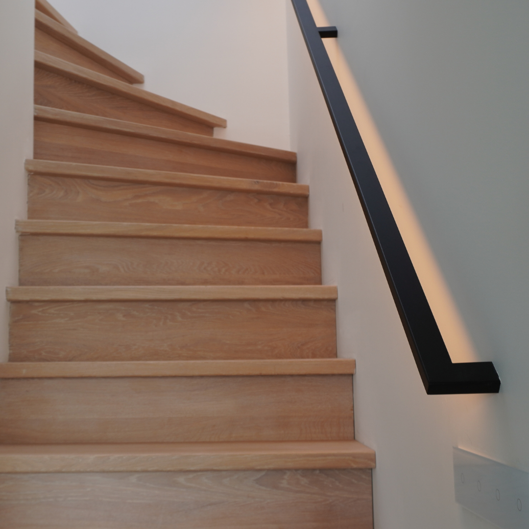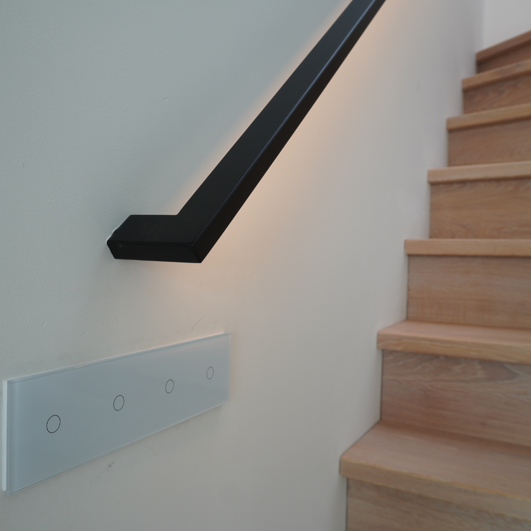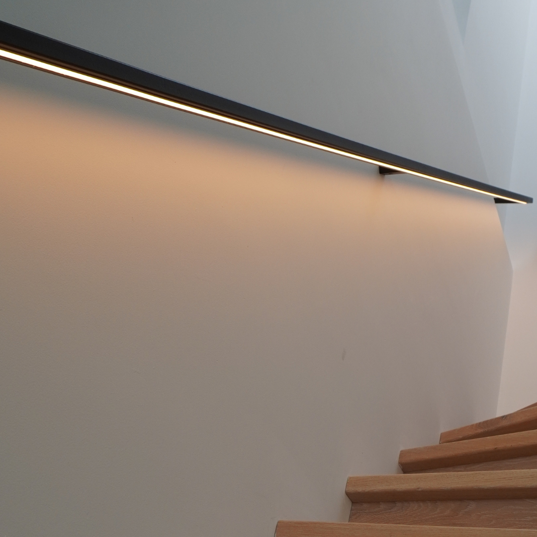 De LED-strip is volledig in het profiel verwerkt, zodat het slanke en strakke karakter van de leuning behouden blijft. Perfect voor wie design en functionaliteit wil combineren zonder visuele onderbrekingen.