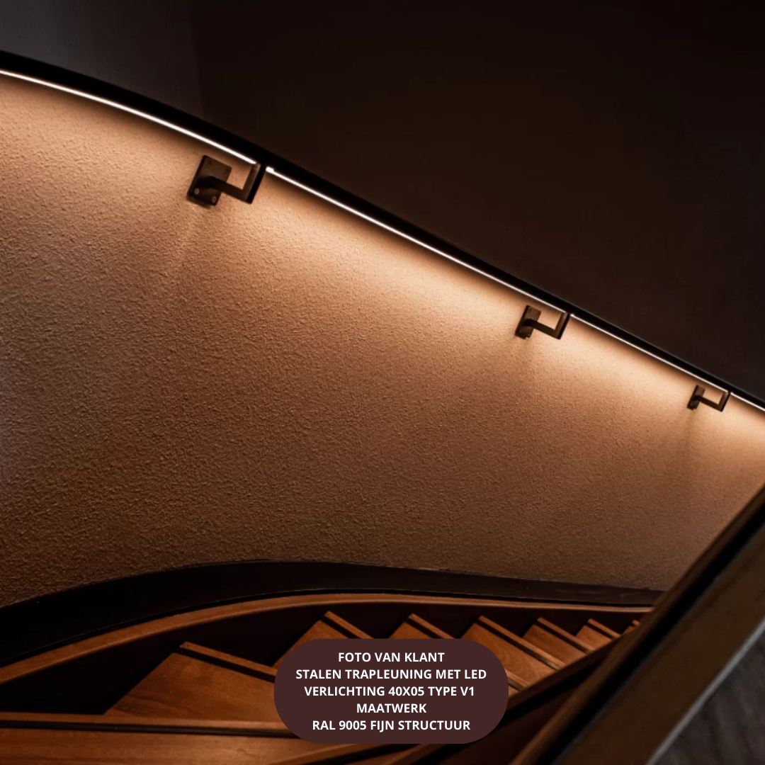 - Stalen trapleuning 40x20 mm met geïntegreerde LED-strip (2700K)