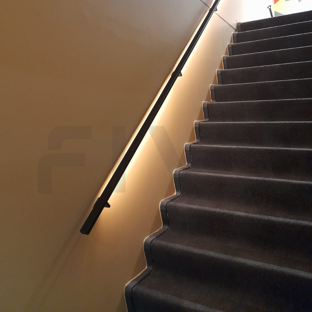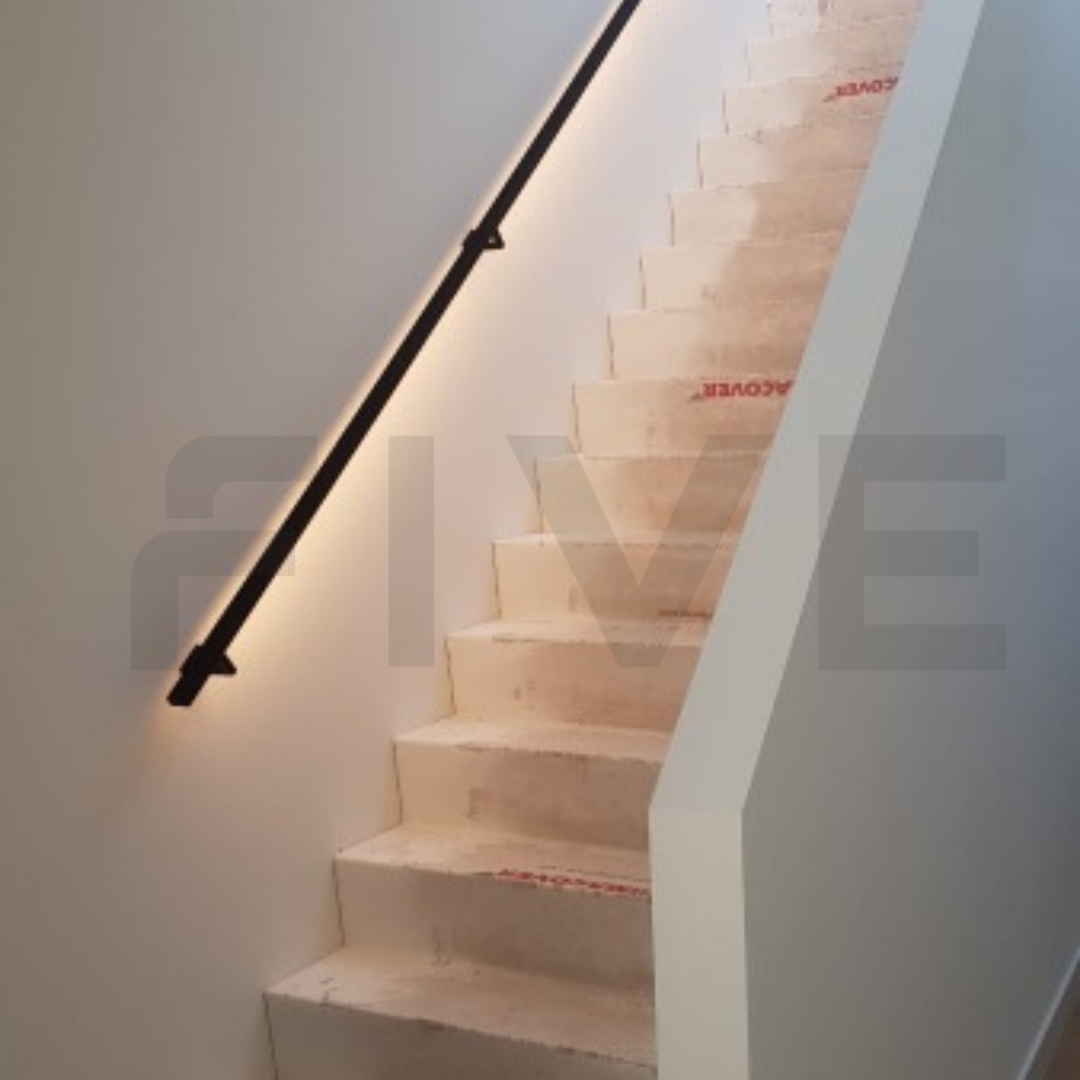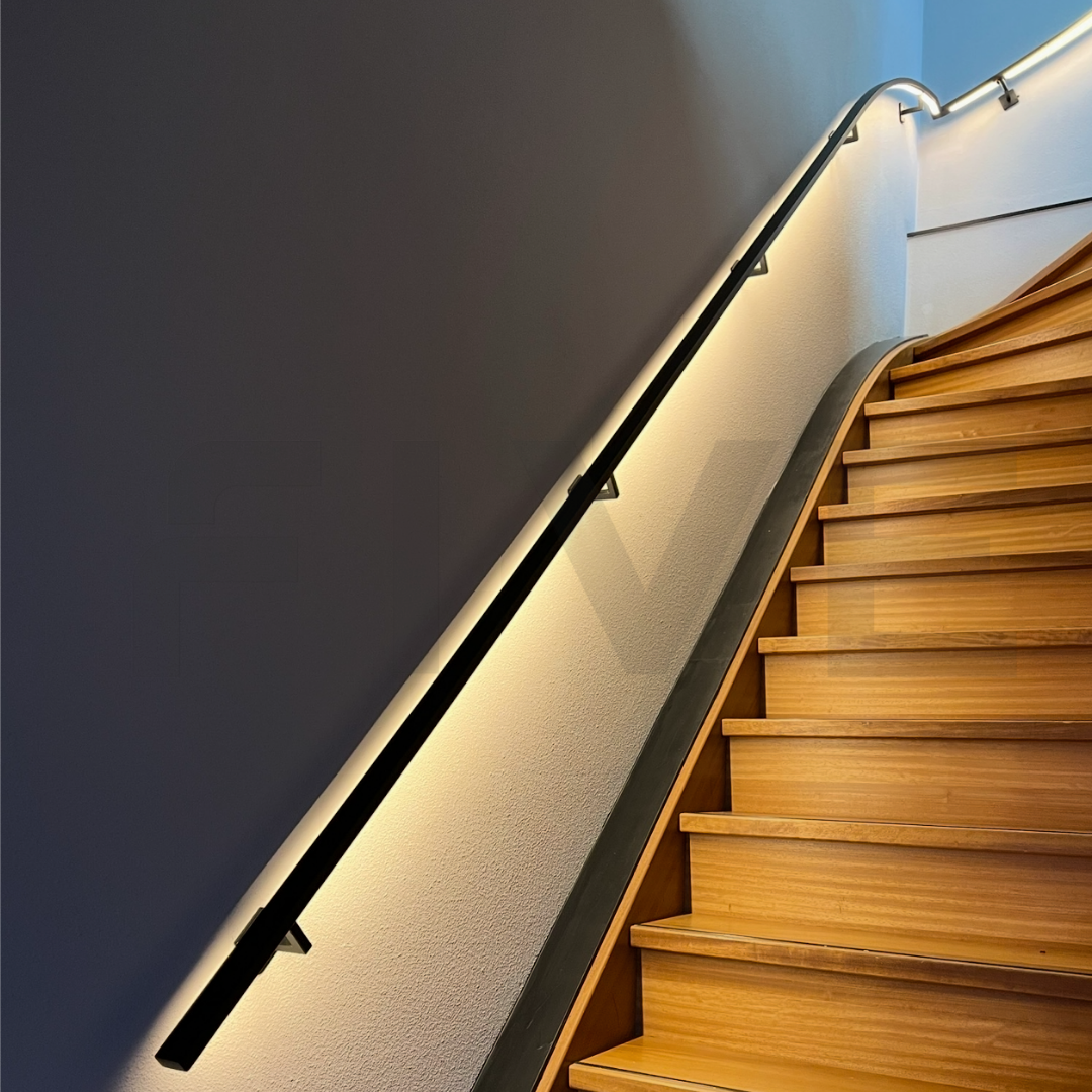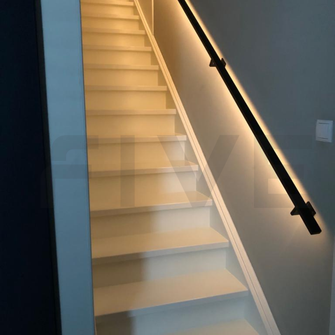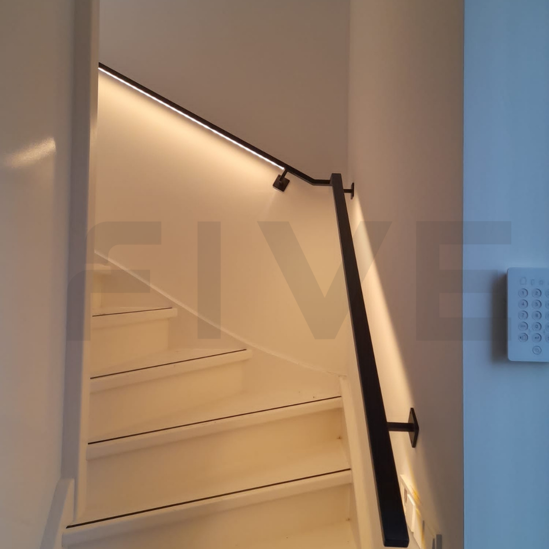 Ben je op zoek naar een stalen trapleuning met een strak design én geïntegreerde verlichting? Deze moderne trapleuning van 40x20 mm met vierkante leuninghouders type V1 uit de collectie van Five Stairs combineert minimalistisch design met praktische innovatie. Dankzij een speciaal ontwikkeld LED-profiel door de vakmannen van Five Stairs is deze trapleuning uitgerust met een subtiele, volledig geïntegreerde LED-strip. Zo geef je jouw trap niet alleen een stijlvolle uitstraling, maar ook functionele verlichting.