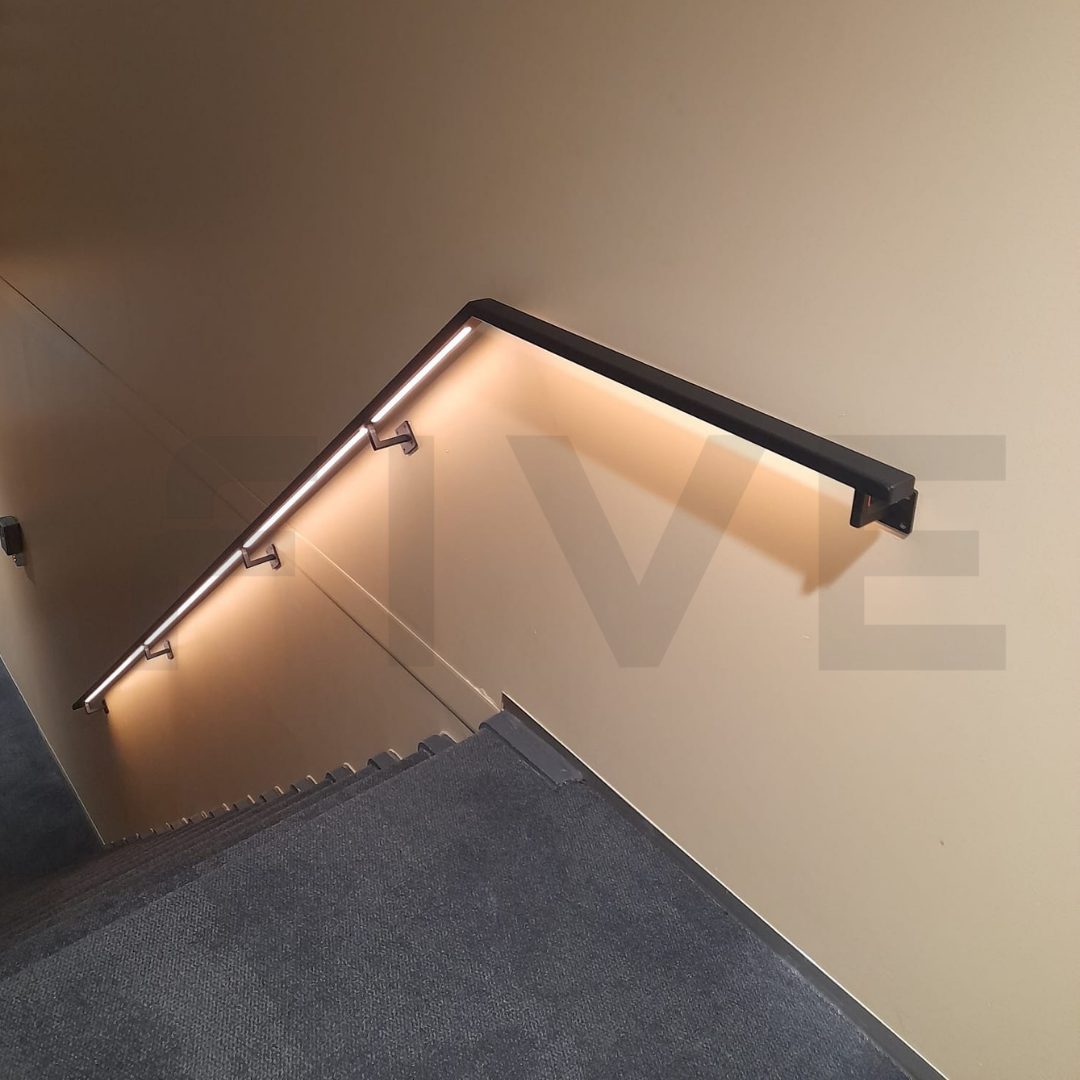 - Stalen trapleuning 40x20 mm met geïntegreerde LED-strip (2700K)