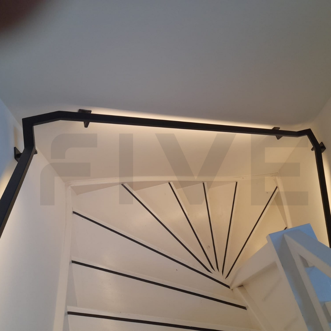 Five Stairs staat voor exclusief maatwerk, hoogwaardig design en vakmanschap. Onze trapleuningen zijn nergens anders verkrijgbaar en worden met zorg in eigen beheer ontwikkeld. Of je nu gaat voor een klassieke uitvoering of een model met geïntegreerde LED-verlichting – met Five Stairs haal je een uniek, duurzaam en stijlvol product in huis.