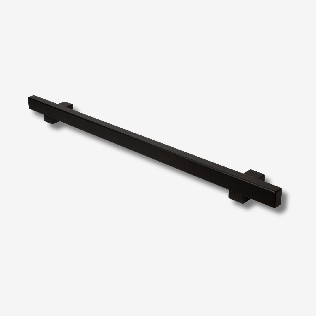 De trapleuning is vervaardigd uit hoogwaardig staal en voorzien van een duurzame matzwarte poedercoating (RAL 9005). Door de verticale plaatsing van de koker ontstaat een uniek profiel, dat zich onderscheidt van de standaard horizontale modellen. De hoogte van 40 mm zorgt voor een fijne handligging, terwijl het smalle aanzicht van 25 mm een subtiel en minimalistisch effect geeft aan de muur.