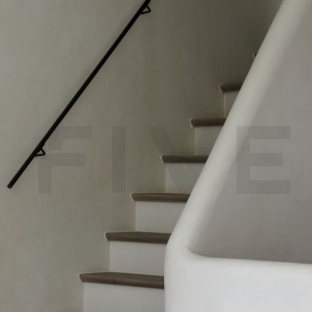 Op zoek naar een bijzonder slanke en subtiele trapleuning met een strak design? Deze ronde stalen trapleuning Ø25 mm van Five Stairs is uitgevoerd met aangelaste leuninghouders type R3. Dankzij het compacte formaat en de vaste houders ontstaat een minimalistisch en elegant geheel dat perfect past in moderne en lichte interieurs.