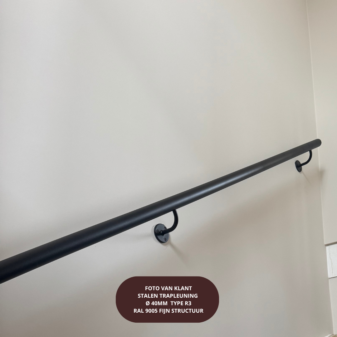 Stalen trapleuning - Rond 40mm - Met aangelaste leuninghouders type R3 - Basic line - Zwart RAL 9005